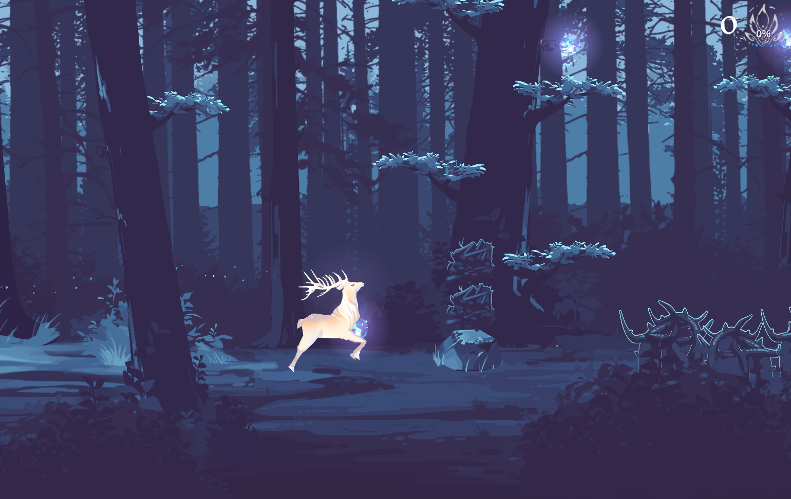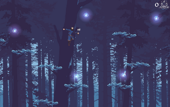 Simple Platformer; jump across the trees collecting Will-o'-the-wisp